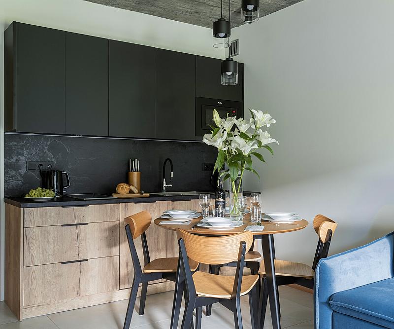 Liliowa 15 to dwa duże domy podzielone na luksusowe apartamenty. W każdym apartamencie mieści się salon z aneksem kuchennym, łazienka i w zależności od układu jedna lub dwie sypialnie z łóżkami małżeńskimi. Każdy apartament posiada taras lub balkon wyposażony w zestaw mebli ogrodowych. Domki są ogrzewane centralnie, posiadają ogrzewanie podłogowe, dlatego zapraszamy Państwa również w chłodne dni.